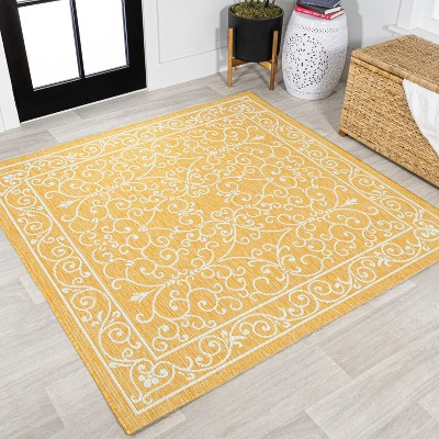 JONATHAN Y Nevis Palm Frond Yellow/Cream 5 ft. Square Indoor/Outdoor Area Rug, Non-Shedding, Easy-Clean