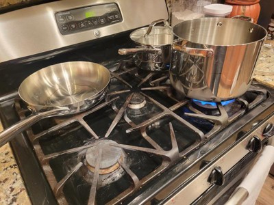 I love this set. We cooked with them for Thanksgiving dinner on our gas range. They were great; no sticking and even heating! I will definitely be purchasing more!