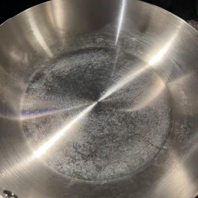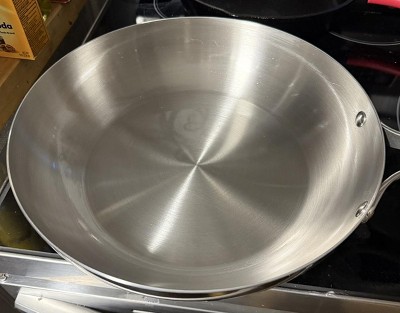 First off, to those reviewers with stuck food or dirty/burnt pans, learn to cook and clean with stainless, it’s not that difficult honestly, I learned and so can you. Anyhow, my main gripe with this pan is the cooking surface area. It’s practically the same as the 10” pan, maybe about half an inch larger. Most proper pans are at least more. About 2” from the actual “size” which is rim edge. The sides of this pan are just higher and angled/flared out more. You’re better off getting the saute pan for $10 more and it’s more versatile.