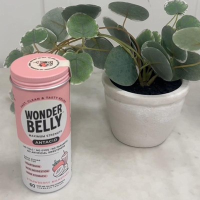 MAXIMUM STRENGTH & FAST RELIEF: Wonderbelly Antacid tablets provide maximum strength and fast relief from heartburn and related upset stomach with a great taste, effective ingredients and sustainable packaging. Inside each recyclable bottle, you'll find 60 chewable Strawberry Milkshake flavored tablets, each containing 1000mg of Calcium Carbonate to help relieve heartburn, acid indigestion and sour stomach.