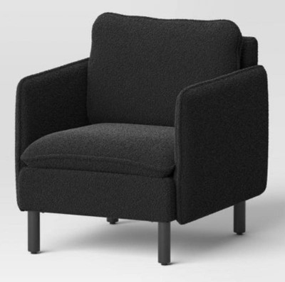 Square Back Accent Arm Chair Boucle Black - Threshold™: Upholstered Polyester, Rubberwood Legs