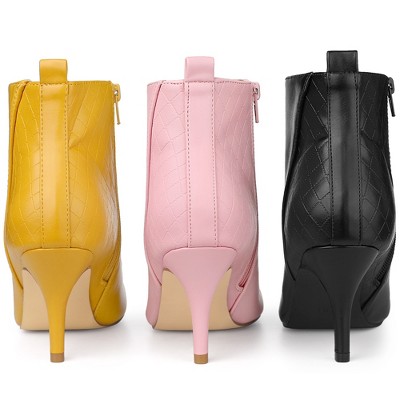Step out in style with these chic ankle boots that combine fashion and function. Designed with a sleek V shape, stiletto heels, and a convenient side zipper closure, these boots are perfect for both casual walks and lounging around. Available in classic black, bold red, and crisp white colors, they pair effortlessly with skinny jeans or a skirt from the full range for a top-to-toe look that's sure to turn heads. Upgrade your wardrobe with these versatile and stylish ankle boots today!