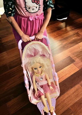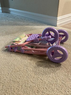 [This review was collected as part of a promotion.] This is just the sweetest little doll stroller and my daughter loves it! It was very easy to put together, took me about 10 minutes. The iridescent color makes it look fancy. Almost every doll and stuffed animal fits and my little one has tried them all. The wheels roll week and can be used in the or outside. It also cleans and wipes down easily! I recommend it!