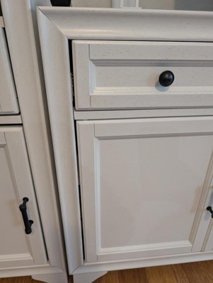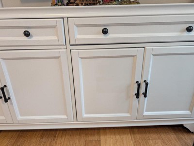 Doesn’t line up for the drawer to close on the shelf unit. Also is missing pre-drilled holes for the bottom shelves. The sideboard was okay. I wouldn’t buy again.