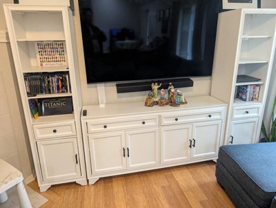 3pc Tara Sideboard and Bookcase Set Distressed White - Crosley