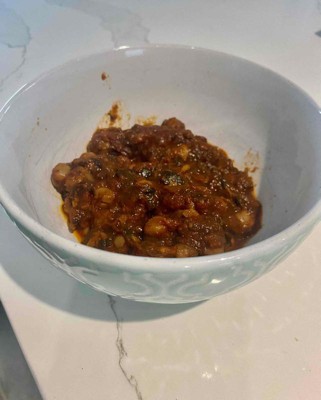 This one is my favorite of all the microwavable pouch lunch options and of course now it's out of stock for pickup and can't be shipped. I had been trying all the different microwavable pouch selections to find some good stuff for work to keep in the cabinet. This one was my favorite. I have it notified to let me know if it ever gets in stock again. It's really good but I mean it's down to personal preference. If caramelized, onion, tomato, spinach and chickpeas sounds like it will be good to you then this will probably be good to you - great over rice.