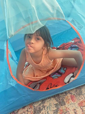 [This review was collected as part of a promotion.] Fun tent for the kids. But as it is for the kids, I would say it would be nicer if it was easier to setup. This felt like a camping tent for adults. The material is nice and sturdy though. My kids fell on it a few times and the tent just bounced back up. The flashlight is fun. Though the discs that came are a bit of a challenge to get out of the base holder, and impossible to get out if the child puts them in upside down (would have been nice to make it more robust). Overall though, my kids have a lot of fun! Make sure you have room for this tent!