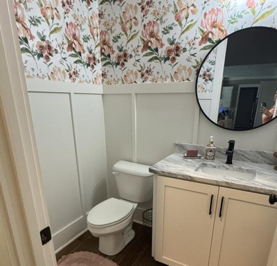 Beautiful print, easy to use. However the way they rolled the paper you have to either start from the bottom of the wall and work your way up or unroll the entire roll and try to manage and giant strip of wallpaper. Unfortunately we did not realize the print was upside down until we were nearly finished with the project.