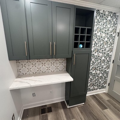 I love this wallpaper so much! It is so easy to apply. I decided to add some color to my boring tiny laundry room and this pattern was perfect!! Because if you HAVE to be in your laundry room it needs to make you happy! I’m in the process of painting the cabinets to go with this wallpaper. I can’t wait to come back and share a picture when it’s all done!