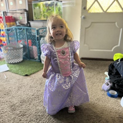 Very cute princess dress my daughter loves it she’s 4 and it’s perfect size for her. It’s not the best material but ok for the price.