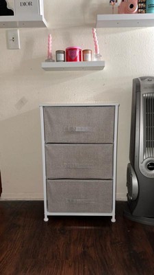 Emma and Oliver 3 Drawer Vertical Storage Dresser with Black Wood Top & Gray Fabric Pull Drawers