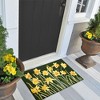 Any flower lover will surely enjoy this playful daffodil design. The nature inspired colors will be a great accent to any decor, in green. Hand hooked of weather-resistant fiber, this collection is a blend of comfort, softness and durability. Frontporch is remarkably easy to clean and treated for added fade resistance. Limiting exposure to rain, moisture and direct sun will prolong mat life.