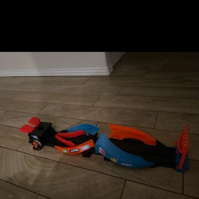 - There are 2 ways to play! Launch the 2 included racecars straight across in 'daytime mode' or into a criss-cross stunt in 'night mode'