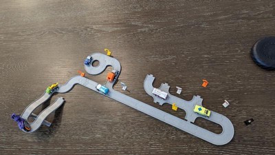 [This review was collected as part of a promotion.] Our son loves this car & track set. It is easily put together, however I personally wish it came with different ways to put the track together. We finally figured one way that would work and is a daily hit. We will be adding others to this set. The details on the vehicles are spot on. The colors are bright. The street signs were a nice added touch. The track is has several ways it goes together including flipping the pieces if needed. Overall a neat and exciting track set.