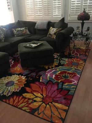 Rug; Tuscany is perfect for the growing girl teenager. Bold big flowers are a hit against the black background. Looks great in her room