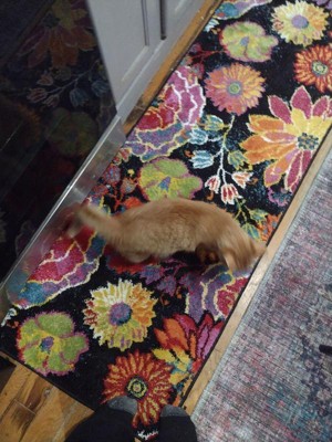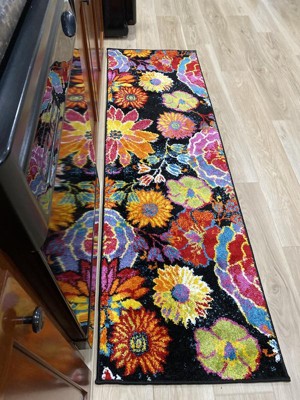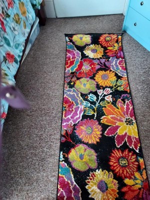 This floral runner rug is stunningly beautiful!! The black background makes the bright colors pop. A well made rug too!