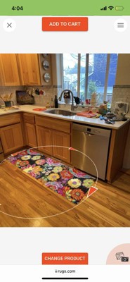 Beautiful rug! I love the colors and with the pad underneath, it is comfortable standing at the kitchen sink.