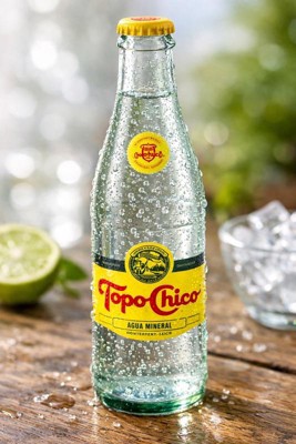 Topo Chico delivers a crisp and fresh test. Its mineral profile satisfies on its own or with food. The aroma is light and fresh. It comes with iconic glass bottle.