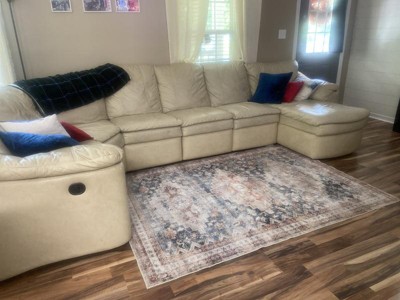 [This review was collected as part of a promotion.] This washable rug has a great and modern design that makes it appealing for several areas of my home. We have a few dogs and with paw prints and accidents, it’s great to be able to just toss the rug in the washer and reuse quickly rather than getting a shampooer out. The material is on the thin side however that’s to be expected with a washable area rug. The rug stays in place and keeps its shape.