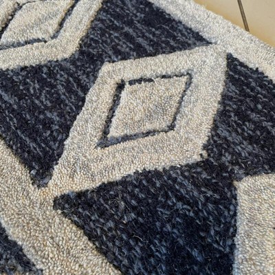 I can’t say enough good things about this rug, it’s everything I expected and more. Hand tufted wool, heavy and well made. It rolled out flat immediately. I wasn’t looking for something soft, but rather thick with some weight, to be able to hold up to guests wiping their shoes on it. I can honestly say this would be able to handle the wear and tear while hiding the dirt. It’s a little over half an inch thick where my entry door easily clears it. The colors are beautiful, the navy area has powder blue strands mixed in while the ivory part has light gray strands mixed in. I had considered a runner but it just didn’t look right, many didn’t have the width or weight, so glad I went with a 4x6 and this thickness. I have added sticky grips underneath to hold it in place, I may add a thin rug pad if I notice it moving. The only con I will say is that it has a funky odor. I’m hoping over time it will fade. I’ve sprayed it with febreeze and that has helped some.