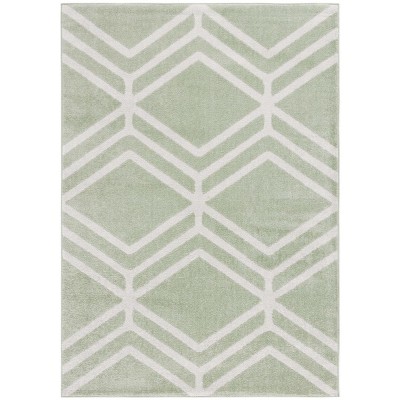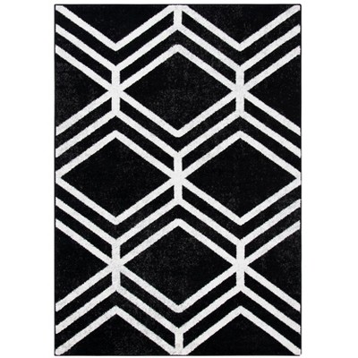 Caution when ordering: I ordered the "Black/Ivory" based on the image of a mostly light colored rug with black/charcoal geometric lines. What arrived is actually a black background with ivory/off white lines. I kept the rug because as you can see it looks fabulous in my breakfast nook and I didn't want the hassle of rerolling it to return it! The banquette and chairs are also from Target.