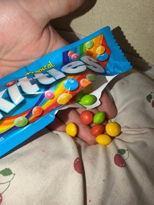 SKITTLES Tropical Chewy Candy has a fun, fruity flavor, but the taste isn't as bold as I'd hoped for. The texture is classic Skittles—chewy with a nice bite—though some pieces felt a little harder than expected. The freshness was decent, but I've had better batches. For the price, it's okay, but there are other candies out there that offer better value. Packaging is colorful and eye-catching, but not enough to make up for the taste.