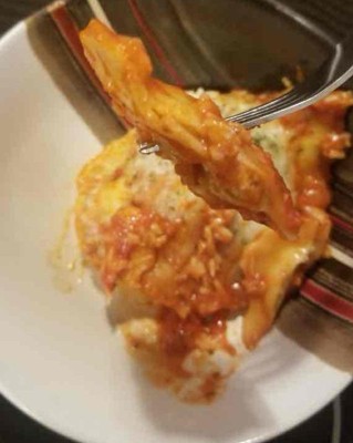 The taste was OK, but I think it would be better just buying a bag of raviolis and getting some cheese and tomato sauce. It’s not a lasagna, but rather a bunch of raviolis top of each other.