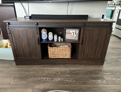 Smooth Sliding Barn Door: Enjoy the satisfying glide of the sliding grooved barn door, blending rustic charm with everyday convenience. It’s easy to access your media essentials while adding a cozy farmhouse touch to your room, making your space feel more lived-in and welcoming