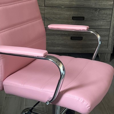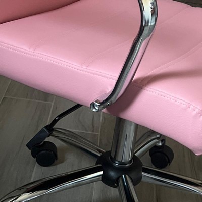Beautiful Pink that compliments the beautiful white chair i first bought! I had to cop this pink chair as well since the white was that beautiful and my home office decor consisted of pink, white and nude! The chair is classy, comfortable and worth every penny!