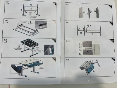 Very cute basic study desk. Works perfect for a young child. Goes up and down well. Kids get excited to do homework on it. Building is tricky and I used a hammer to push plastic pieces sticking out into the shelving parts.