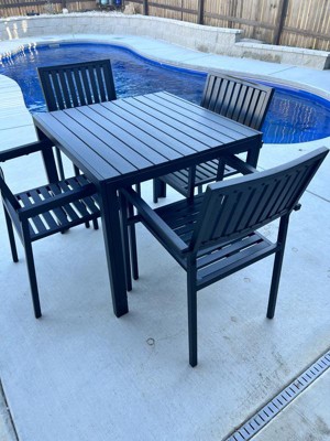 Flash Furniture Harris 5 Piece Commercial Indoor/Outdoor Table and Chairs with Black Poly Resin Slatted Backs and Seats