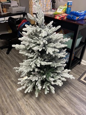 Create your own winter wonderland scene even in a limited space environment with this flocked artificial Christmas tree. Easy and effortless, this winter-inspired artificial Christmas tree boasts a traditional silhouette of realistic looking evergreens made up of 967 easy-to-bend branches for showcasing your own personalized ornaments - all fully flocked with faux snow to create a picturesque Christmas. Arriving pre-strung with 300 clear LED lights to eliminate tangles and stabilized on a metal stand, this flocked 4' tall artificial Christmas tree will undoubtedly transform any tight space into a joyous holiday setting for years to come.