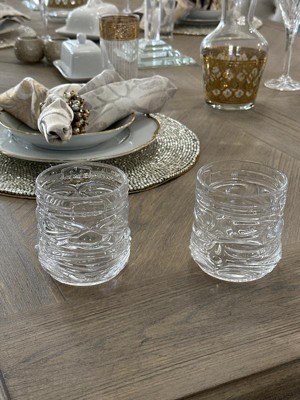 Viski Pacific Tiki Glasses Stackable Lowball DOF Tumblers, Tropical Cocktail and Bar Gifts for Rum and Whiskey, 12 Oz, Set of 2