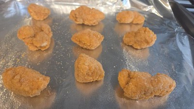 These are the same as the tenders but they are boneless chicken bites. These are so crispy and so yummy right out of the oven. If I had one complaint, the bag didn't tear open correctly and we had to cut it and open it up forcefully to get it open. We did have to cook these a little longer for them to be extra crispy like we like. We used them in chicken caesar salad roll ups. Yummy!!!