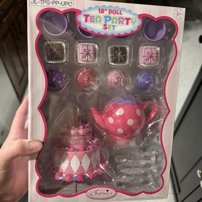 [This review was collected as part of a promotion.] I'm so happy my mom got my daughter the Sophia's 18" doll small tea party set in pink, she played for hours with it. The set was perfect for her American girl doll . It had so many things for a tea party including a cake. She even let her sister play which doesn't happen much. Thanks for a great product hope to see more.