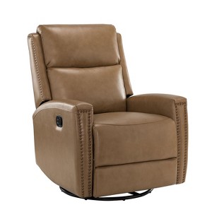 Product Name: Hilario 30.31 Wide Genuine Leather Swivel Rocker Recliner| ART OF LIVING DESIGNS-TAUPE