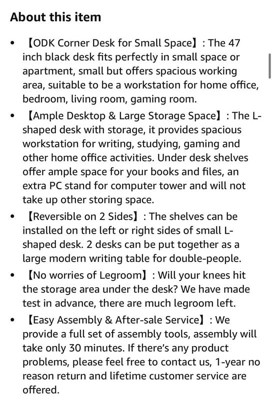 [This review was collected as part of a promotion.] I received this product free from Influenster in exchange for my honest review. I have purchased similar desks in the past and have been happy with this one. I like that you can move the direction the “L” is in to fit your space (so you’re not stuck with 1 option).
