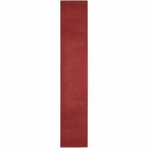 So far I love this outdoor rug! It lays down well, easy to clean. The color is a true red.