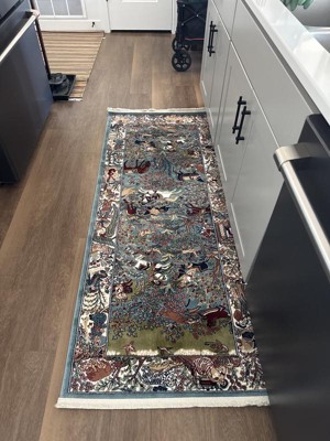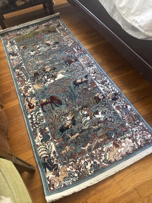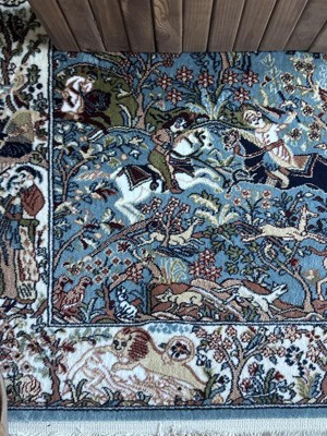 Who doesn’t want a medieval battle scene rug? Who even know these existed? I should have gone for a big one. I have to admit on the runner some of the horses get but off but there’s enough going on in this rug so that doesn’t really matter. Very fun purchase. Go for it. You’ve always wanted one.