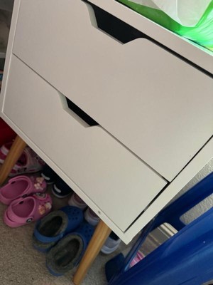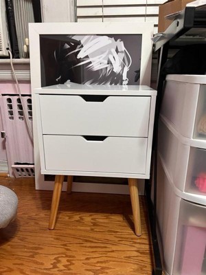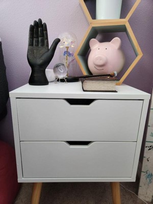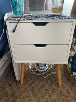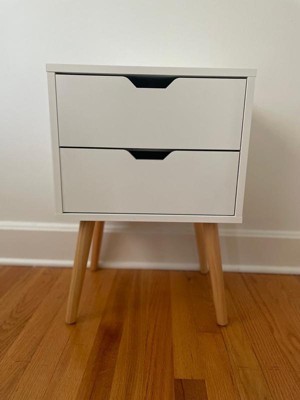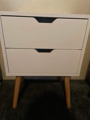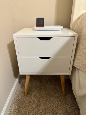 Sweetgo Modern Wooden Bedroom Nightstand End Side Table with 4 Anti-Slip Rubber Padded Legs, and 2 Groove-Handled Storage Drawers, White