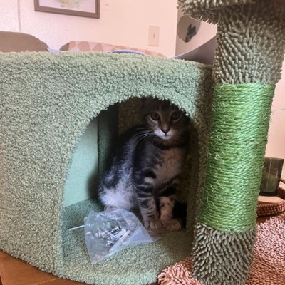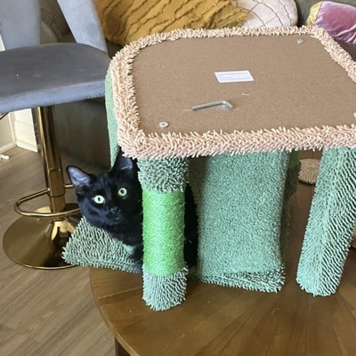 This might be one of the most loved trees that we've bought! Our two cats love teasing each other through the small spaces in between the scratching posts, and the 'cave' is prime real estate. I do wish it was EVEN BIGGER, as the top spot is a bit too much above the cave, and the cats are choosing to jump straight to the floor. Love this purchase so much. Easy to put together as well :)