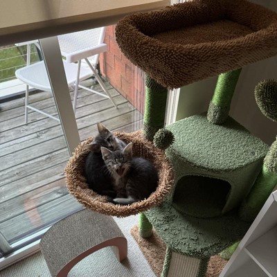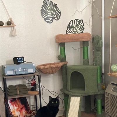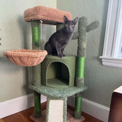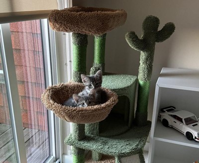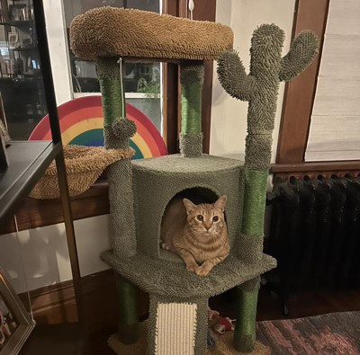All-In-One Cat House: Furnished with a cozy top platform, a warm condo, a comfy basket, and five scratching posts at different heights, this cactus cat tree is the ideal solution for cats to rest or sharpen their claws