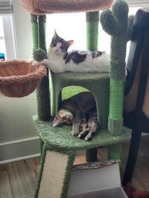 My cat took a bit to warm up to this tree, but now she loves it. The colors and the catcus are a very cute addition to my house!