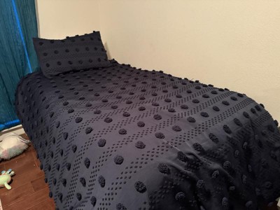 [This review was collected as part of a promotion.] Lucy Clip Jacquard Duvet Cover Set is a really pretty blue color. The fabric flower/balls are very hard and make it uncomfortable to lay on top of. Being that it is a duvet cover you don’t always want to lay under. The design is cute and the deep blue is such a great color. The packaging is very poor quality.