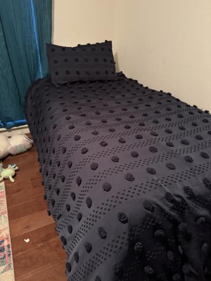[This review was collected as part of a promotion.] We got this for our youngest child's room. Their favorite color is blue, and they are a sensory kid. This has a nice look with a lot of texture and the "pom poms" as our child calls them are fun. They add a level of sensory experience that you don't get out of a lot of modern bed coverings. We've had it in their room for the past month and it's held up well to a lot of bed jumping and pillow fort construction. If it's holding up to the abuse of a young child over the past month it should continue to hold up well for the average user.