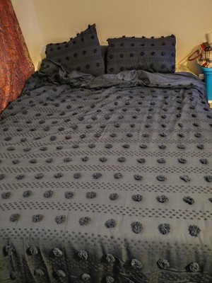 [This review was collected as part of a promotion.] I absolutely love this Lucy Clip Jacquard Duvet Cover set. It is perfect for my bedroom and I love the pompom details on the set. I didn’t realize that this had an antimicrobial treatment on the fabric until I received it, but this is so nice. My dogs love to get on my bed and this helps to keep any odors down. It is easy to clean as it is machine washable and has stayed looking nice after several washings. I highly recommend this Lucy Clip Jacquard Duvet Cover set.