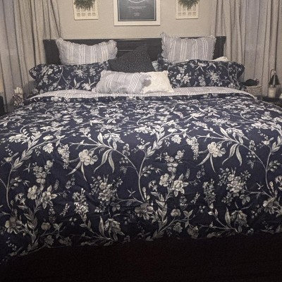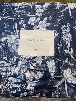 Laura Ashley 7pc King Branch Toile Comforter Sham Bonus Set Blue: Includes Euro Shams, Machine Washable