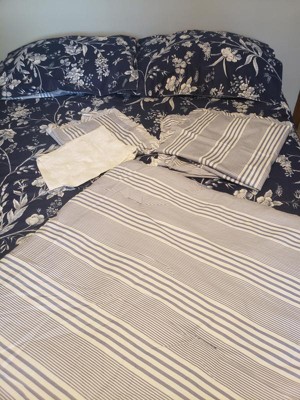 [This review was collected as part of a promotion.] I like this comforter,it is a pretty blue floral print on one side and a blue and white stripe,like a old mattress on reverse side.The comforter set came with matching shams and pillowcases as well as two pillow slip covers of different sizes.