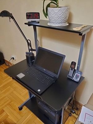 This computer table with shelf is made from durable materials and support by iron tubes. Multilayer design makes the desk practical and convenient to use. A printer, fax machine, and other electronic devices can be placed on it; top for little printer and lower for CPU, it’s up to you. The shelf on casters, with a metal frame/legs and wood desktop. Smooth casters enable you to move your computer desk anywhere.
