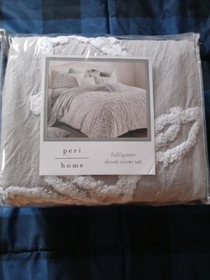 Peri Home 3pc Full/Queen Chenille Rose Duvet Cover & Sham Set Gray: Cotton Bedding, Lightweight Fabric